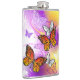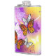 Laranja, borboletas monarcas detalhadas sobre luz, roxo, pitoresco, fundo pintado.