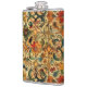 O produto apresenta um padrão de ornamentado uniforme com um estético rico e antigo. Ele apresenta um design de alto detalhe de elementos florais e botânicos girando em tons quentes e úmidos de ouro, laranja, vermelho e verde. A composição inclui flores, folhas e cercas intricadamente fundidas, criando um sentido de profundidade e movimento.