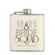 Este design de frasco único apresenta silhuetas femininas modernas, elegante texto "BRIDE SQUAD" adornado com um anel de diamante espumante e um modelo para acrescentar um nome e/ou título de noiva oficial. Crie facilmente um frasco personalizado para uma noite de festa de solteira ou raparigas e mude o texto dourado opcional e a cor de fundo para se adequar ao seu esquema de cor de casamento. Presentes clássicos para damas de honra, madrinhas de casamento, mãe da noiva, amigos etc. Faça um para a sua comitiva inteira. Procure ID252 para ver outros produtos com este design.