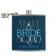 Este design de frasco único apresenta silhuetas femininas modernas, elegante texto "BRIDE SQUAD" adornado com um anel de diamante espumante e um modelo para acrescentar um nome e/ou título de noiva oficial. Crie facilmente um frasco personalizado para uma noite de festa de solteira ou raparigas e mude o texto de turquesa e a cor de fundo opcionais de acordo com o seu esquema de cor do casamento. Presentes clássicos para damas de honra, madrinhas de casamento, mãe da noiva, amigos etc. Faça um para a sua comitiva inteira. Procure ID252 para ver outros produtos com este design.