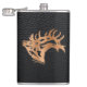 Este Simples "Um de um Tipo", Bull Elk Flask! Ela apresenta uma Silhueta de Elk Bull Bolando Madeira em um fundo de couro preto!