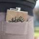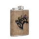 Este Simples "Um de um Tipo", Bull Elk Flask! Ela apresenta uma Silhueta de Elk Bull Bolando Madeira em um fundo de couro marrom! Este é um Design de Arte Original do Artista Kerry Miller. Aproveite!