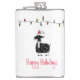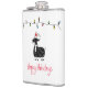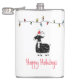 Ilustração de cabra branca com chapéu vermelho de Papai Noel, uma sequência de luzes de feriado e texto personalizável de "Feliz Feriado"