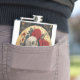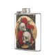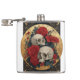 Dos calaveras rodeadas de rosas sobre un fondo dorado con forma de rosetón o moneda de oro, elegante diseño
