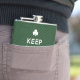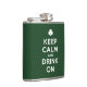 Rua. Frasco de Patrick com shamrock irlandês e slogan engraçado - Mantenha Calma e Beba - paródia da poster de propaganda britânica "Manter Calmo" e "Continuar" no WWII.