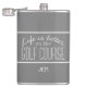 A vida é melhor no campo de golfe, cita golfistas, frasco de bebida de aço inoxidável para o golfista ávido. Adicionar três iniciais monogramadas cria um frasco atemporal, clássico e elegante. Nosso design exclusivo é o presente personalizado perfeito para aquela ocasião especial. Compre nossa coleção integrada de cores coordenadas e acessórios de golfe e esportes.