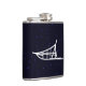 Fique aquecido na trilha. Uma simples silhueta branca de um cão a trenós num fundo estrelado.