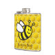 Cartoon voador de abelha sorridente sobre fundo de colmeia de abelha sem costura.