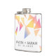 Comemore seu dia especial com este frasco de casamento, que contém um confete de triângulo multicolorido sobre um fundo branco. Adicione os nomes dos recém-casados e a data do casamento. Faz um favor de excelente para os convidados também! Design © W.H. Sim. Mais informações em zazzle.com/expressionsoccasions