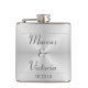 Um design personalizável para um casamento moderno e em tendência. Este design tem um fundo de metal escovado com nomes de carboneto e de vestimenta e data de casamento.