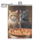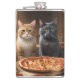 São Quatro Gatos Sentados Em Torno De Uma Mesa Com Uma Pizza Pronta Para Comer.