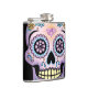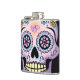 Caveira de açúcar roxa do Dia dos Mortos com flores coloridas, diamante e coração.