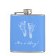 Uma garrafa bonito do anúncio do nascimento do menino de azuis bebés com pegadas recém-nascidas do bebê. Personalize adicionando o nome do bebé novo precioso à área de texto feita sob encomenda e dê-a como um favor de partido do chá de fraldas. ©TracieKaska original da arte