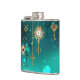 Chaves Douradas e antigas com engrenagens e marcadores penduram em correntes douradas sobre fundo verde luminoso.