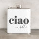 "Ciao Bella" é uma frase italiana que se traduz por "olá, bonito" em inglês. É comumente usada como uma saudação amigável, especialmente para as mulheres, expressando calor e admiração. Mostrada aqui na moderna tipogografia em minúsculas com um estouro de ponta na palavra bella para mais estilo e simples apelação mínima. A frase "ciao" é informal e versátil, significando "olá" e "adeus" em italiano, enquanto "bella" significa "bela" na forma feminina. Juntos, "ciao bella" encapsula uma forma casual, porém afetuosa, de saudar alguém de quem você gosta ou que acha atraente. Este frasco faz uma ideia de presente de excelente para um amigo italiano, membro da família ou colega de trabalho.
