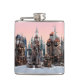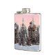 Renderização digital em 3D de uma cidade futurista de ficção científica em um fundo cor-de-rosa