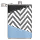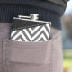 Padrão elegante, na moda e sofisticado de zigue-zague (chevron) em cinzas e cor branca com manchas azuis e pretas de cor. Presente moderno e moderno, perfeito para o amante ziguezague na sua vida.