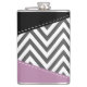 Padrão elegante, na moda e sofisticado de zigue-zague (chevron) em cinzas e cor branca com manchas roxas e pretas de cor. Presente moderno e moderno, perfeito para o amante ziguezague na sua vida.