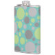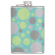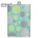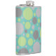 O padrão moderno apresenta grandes e pequenas bolhas de verde-kiwi e tons de cinza em fundo aqua/turquesa