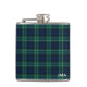 Frasco de aço inoxidável monograma com tartan familiar para Clan Abercrombie. Padrão real da xadrez escocesa azul e verde florestal de 1805, com sotaques a preto e branco.