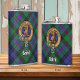 Crachá da crista Clan Baird cercado por uma correia e fivela sobre o tartan. Custom Text.