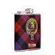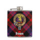 Crachá da crista Clan Brown rodeado por uma correia e fivela sobre o tartan. Custom Text.