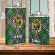 Crachá da crista de clã Cockburn cercado por uma correia e fivela sobre o tartan. Custom Text.
