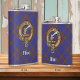Crachá da crista Clan Elliot rodeado por uma correia e fivela sobre o tartan moderno. Custom Text.