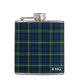 Frasco monograma com tartã para o Clan Gordon e suas sebes, incluindo Addison e Cullen. Padrão de xadrez marinho azul e verde florestal escocês a partir de 1950, com acentuações amarelo e preto brilhantes.
