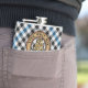 Clan Haig crest badge surrounded by a strap and buckle over check tartan. Custom text.