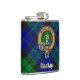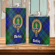 Crachá da crista Clan MacKay rodeado por uma correia e fivela sobre o tartan. Custom Text.
