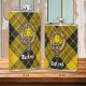 Clan MacLeod do crachá da crista Lewis rodeado por uma correia e fivela sobre fundo tartano. Texto personalizado.