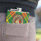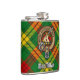 Crachá da crista Clan MacMillan cercado por uma correia e fivela sobre o tartan. Custom Text.