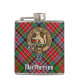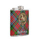 Crachá da crista Clan MacPherson cercado por uma correia e fivela sobre o tartan. Custom Text.