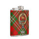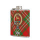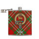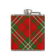 Crachá da crista Clan Scott rodeado por uma correia e fivela sobre o tartã vermelho. Texto personalizado.