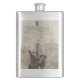 Foto antiga de duas meninas com um sinal de atravessamento de ferrovia