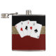 Fundo vermelho, preto e dourado e frasco poker de quatro ases. Você pode mover, redimensionar e excluir as placas de pôquer. Este design de pôquer e de jogo funciona bem para um presente de aniversário de homem, presente de padrinho de casamento, noivo ou qualquer fã de jogos e pôquer!