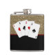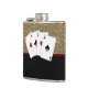 Fundo vermelho, preto e dourado e frasco poker de quatro ases. Você pode mover, redimensionar e excluir as placas de pôquer. Este design de pôquer e de jogo funciona bem para um presente de aniversário de homem, presente de padrinho de casamento, noivo ou qualquer fã de jogos e pôquer!
