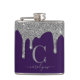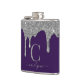 Luxo Roxo e Silver Sparkle Glitter Drips Monograma Pequeno Flask com um falso brilho prateado gotejando em um fundo púrpura real cômico com seu monograma e nome personalizados. Excelente para sua festa de solteira, damas de honra, evento, ou apenas para qualquer um que ama o estilo de vida de luxo. Perfeito para sua estética de luxo! Você está pingando no luxo - mostre! Entre em contato conosco em cedarandstring@gmail.com se precisar de assistência com o design ou produtos correspondentes.