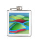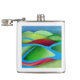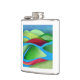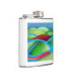 Uma paisagem abstrato com cores e texturas vibrantes mostrando colinas flutuando no gelo em tons de verde, azul, ciano, vermelho e rosa.