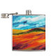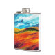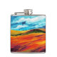 Colorida paisagem abstrato de colinas e céu em cores amarelo, vermelho, verde e azul.