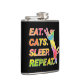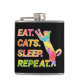 Celebre sua afeição felina com este frasco vibrante mostrando a frase "Come, Sleep, Cats, Repeat." Perfeito para os entusiastas dos gatos, este trabalho de arte captura a alegria diária de viver com os gatos.