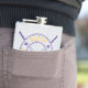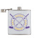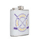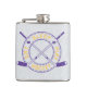 Design retrô de 2 cores em cores contrastantes dourado e roxo. Com bastões de hóquei cruzados e discos de hóquei, e o texto COMA DURMA JOGUE HÓQUEI.
