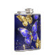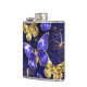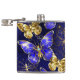 Composição de borboletas luxuosas de safira e joias de ouro em fundo azul texturizado.