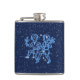 Flask no símbolo do zodiac de Gemini em azul-prata suave, sobreposto com as estrelas da constelação, contra um fundo céu estrelado de azul-da-noite profundo