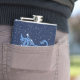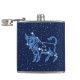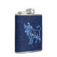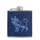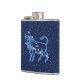 Flask no símbolo do zodíaco para Taurus em azul-prata suave, sobreposto com as estrelas da constelação, contra um fundo céu estrelado de azul-da-meia-noite profundo