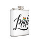 Este trabalho de arte apresenta texto de script com um coração colorido de arco-íris.