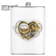 Cardíaco mecânico, volumétrico e steampunk com manômetros de pressão, de aço e de ouro sobre fundo branco. Estilo Steampunk.