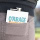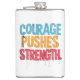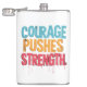 O design apresenta o texto em negrito "Courage Pushes Forth in a dynamic, graffit. Os mundos são renderizados numa paleta vibrante, multicolorido, criando uma composição visualmente impressionante e energética.