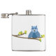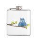 Uma design com uma coruja de desenho animado e sonolenta, empoleirada num galho com algumas flores.
